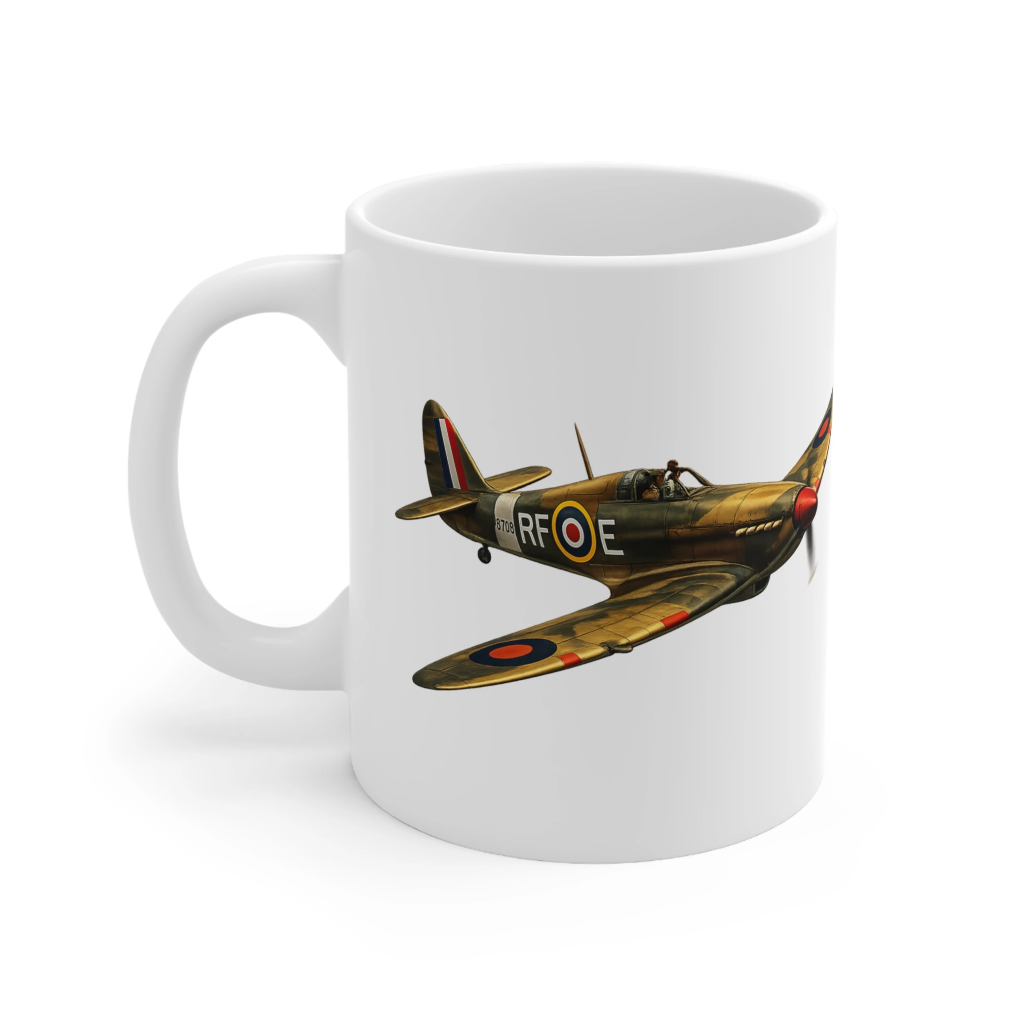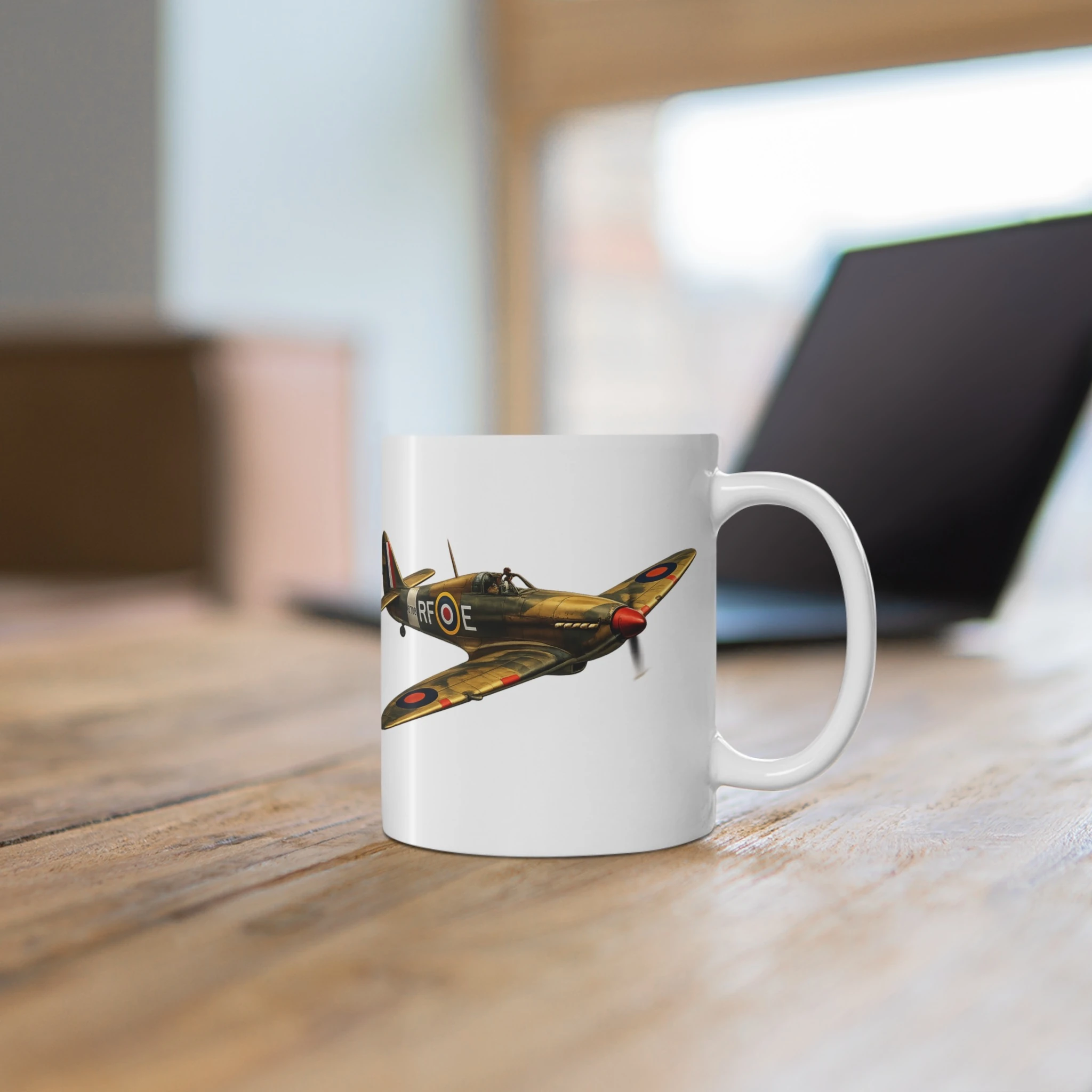 A striking WWII Hurricane mug featuring a clean aircraft cutout design from the RAF Legends collection. Perfect for aviation enthusiasts, military history fans, collectors, and unique gifts.