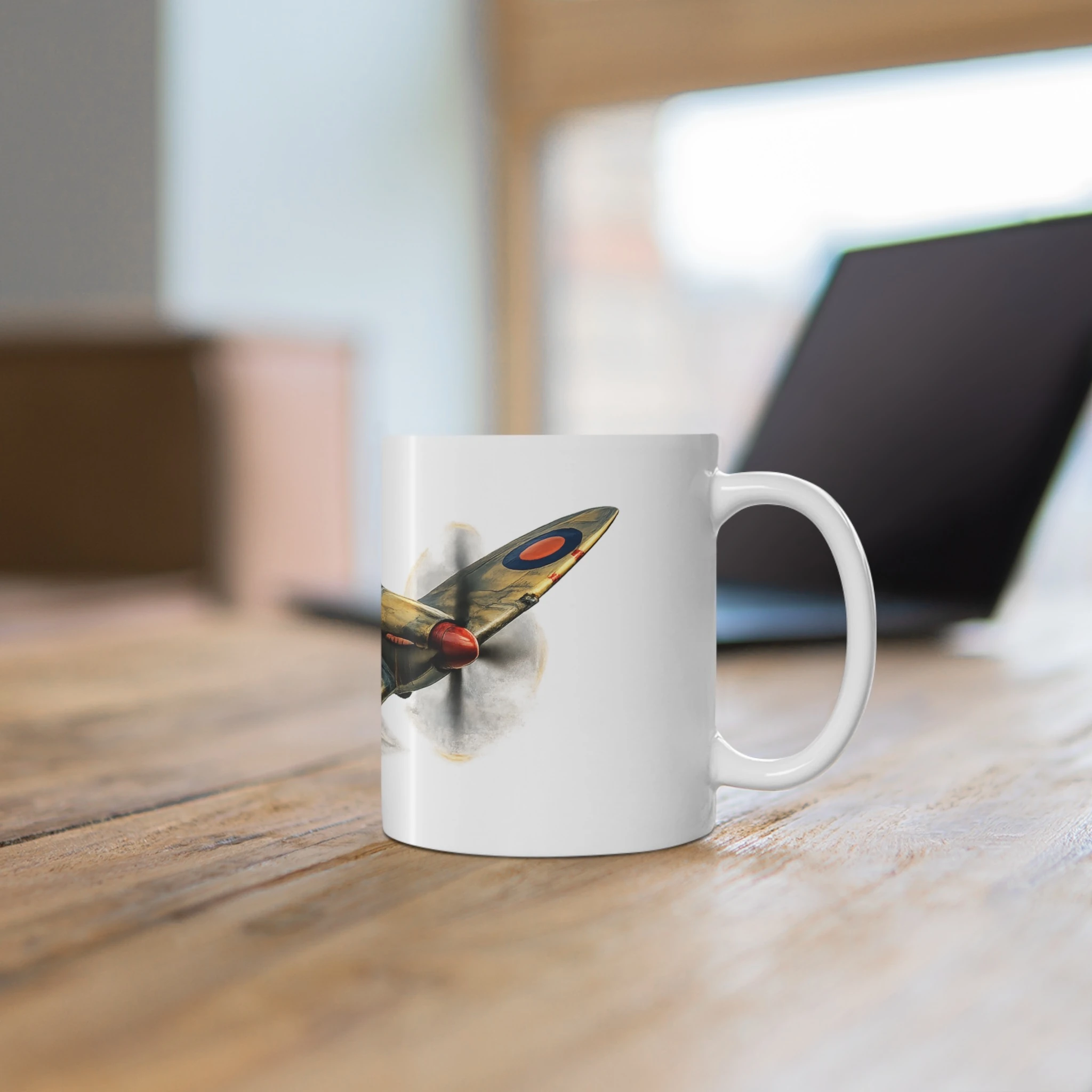 This striking Spitfire mug features a dramatic WWII aviation scene from the RAF Legends collection by Mug Of War.